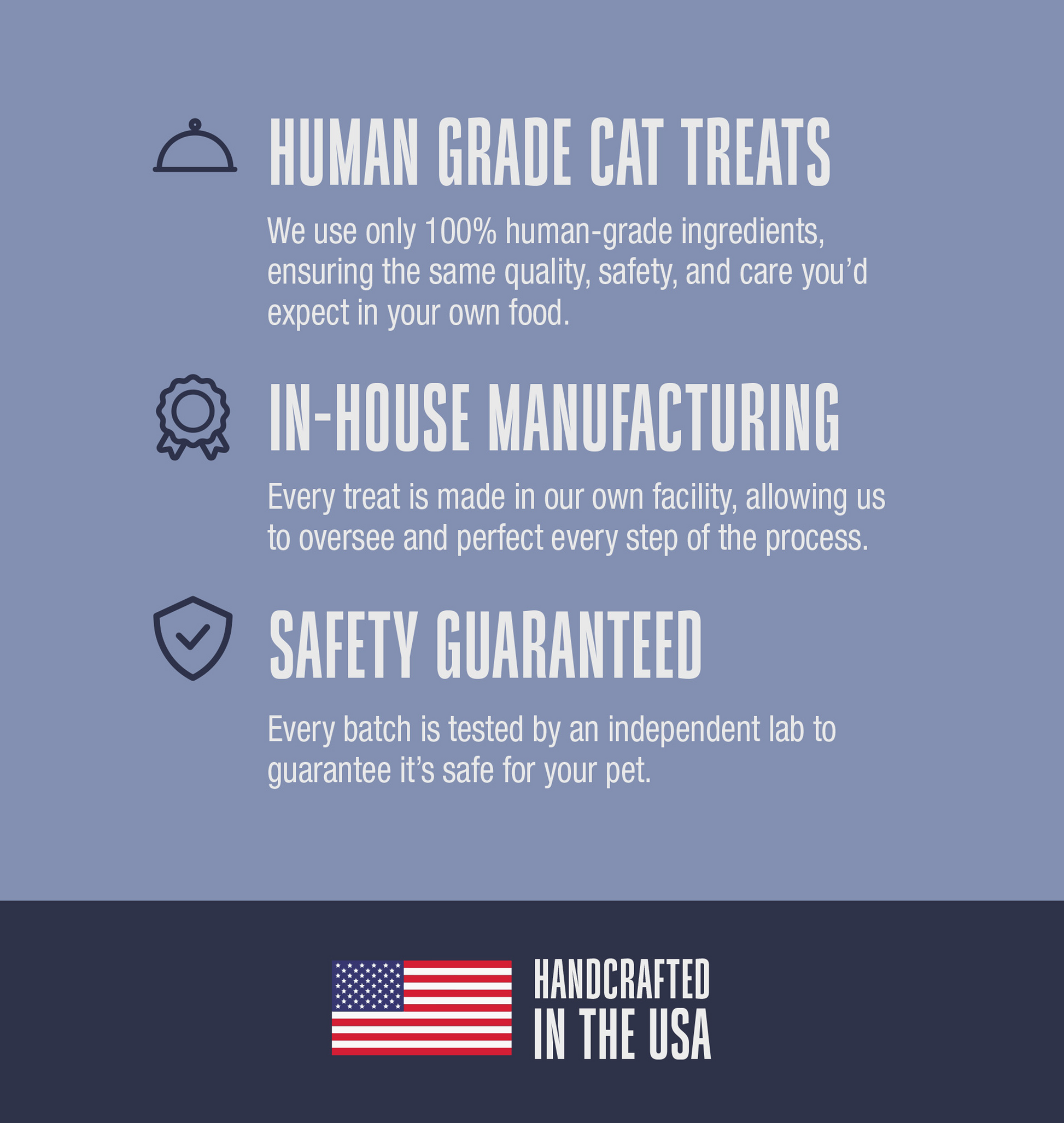 We use only 100% human-grade ingredients, ensuring the same quality, safety, and care you’d expect in your own food.
